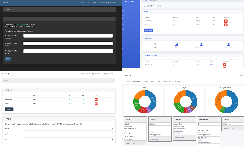 Saltcorn is a platform for building database web applications without writing a single line of code. Use the intuitive point-and-click, drag-and-drop user interface to build your whole application